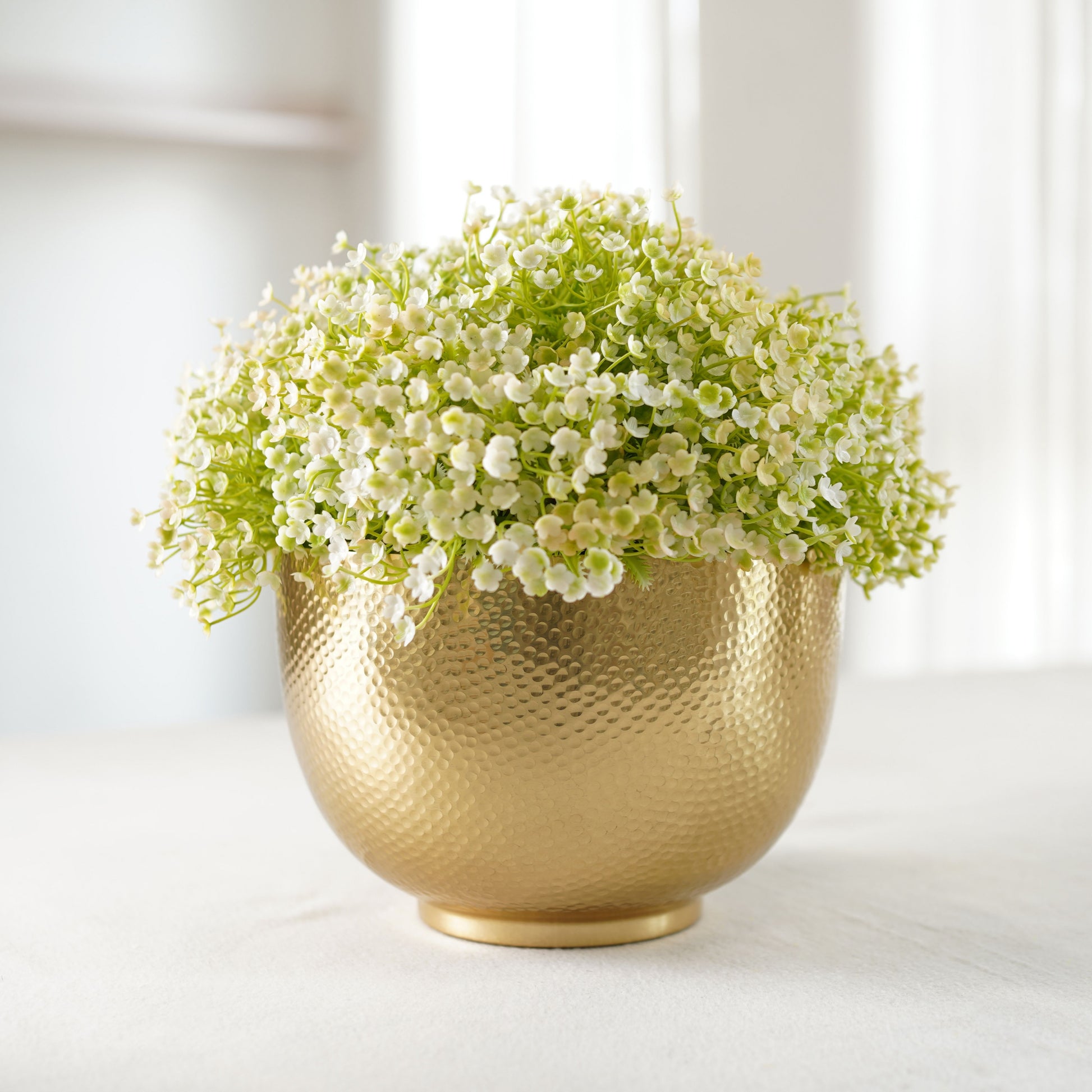 Elevate your space with this elegant Gold Vase, handcrafted in India from high-quality metal with a luxurious hand-hammered texture. Its unique bowl shape and brass finish complement any décor, perfect for fresh or faux flowers. Ideal for living rooms, offices, or gifting, it arrives securely packaged. (plants and decorations are not included)