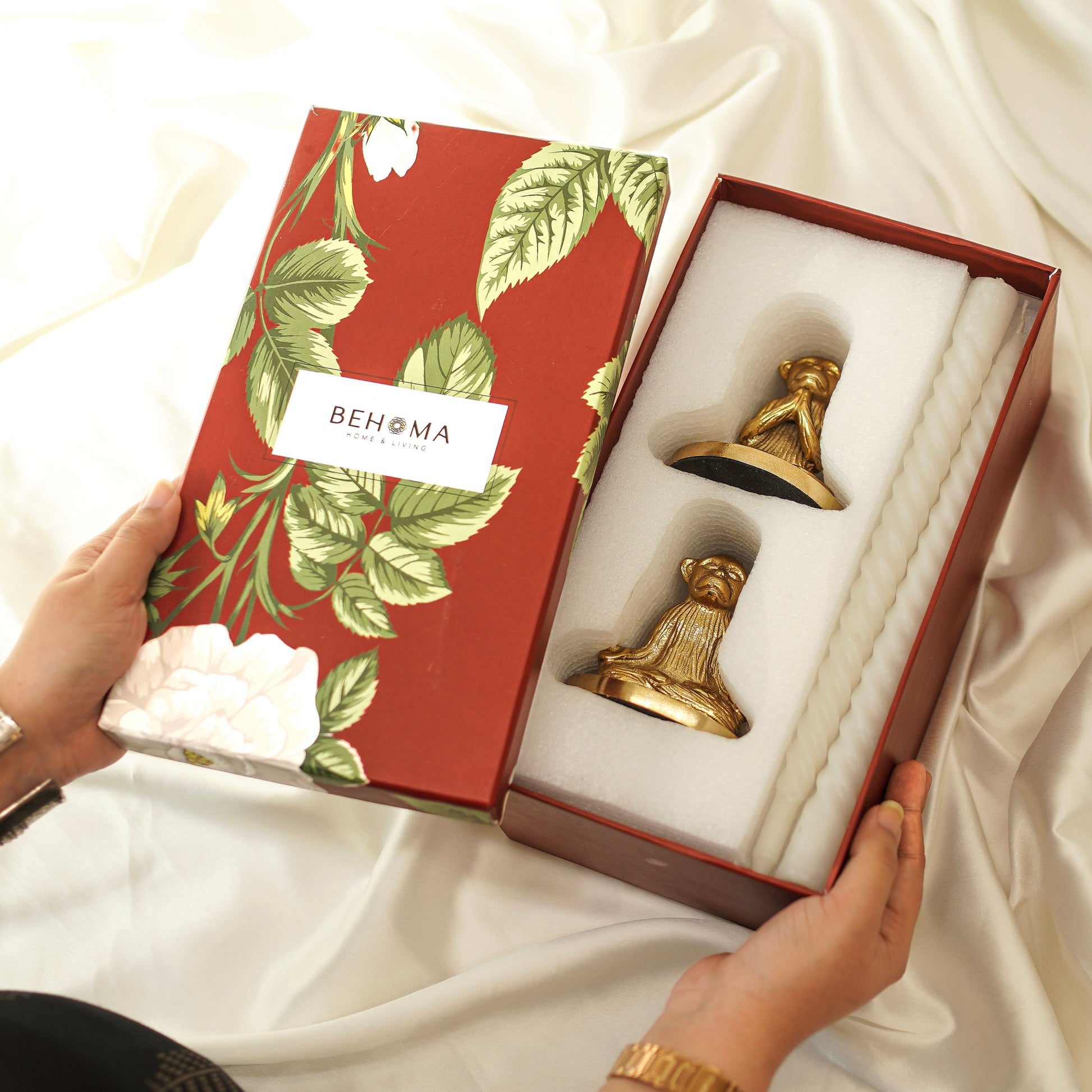 Bring a touch of calm and charm to your space with the BEHOMA Divine Glow Candle Stand Gift Set. Handcrafted in a playful yet peaceful monkey design with a gold finish, this pair of taper candle stands makes a perfect centerpiece for your living room, dining table, or gifting. Packed beautifully in an elegant BEHOMA box, it’s an ideal choice for festive décor and thoughtful presents.