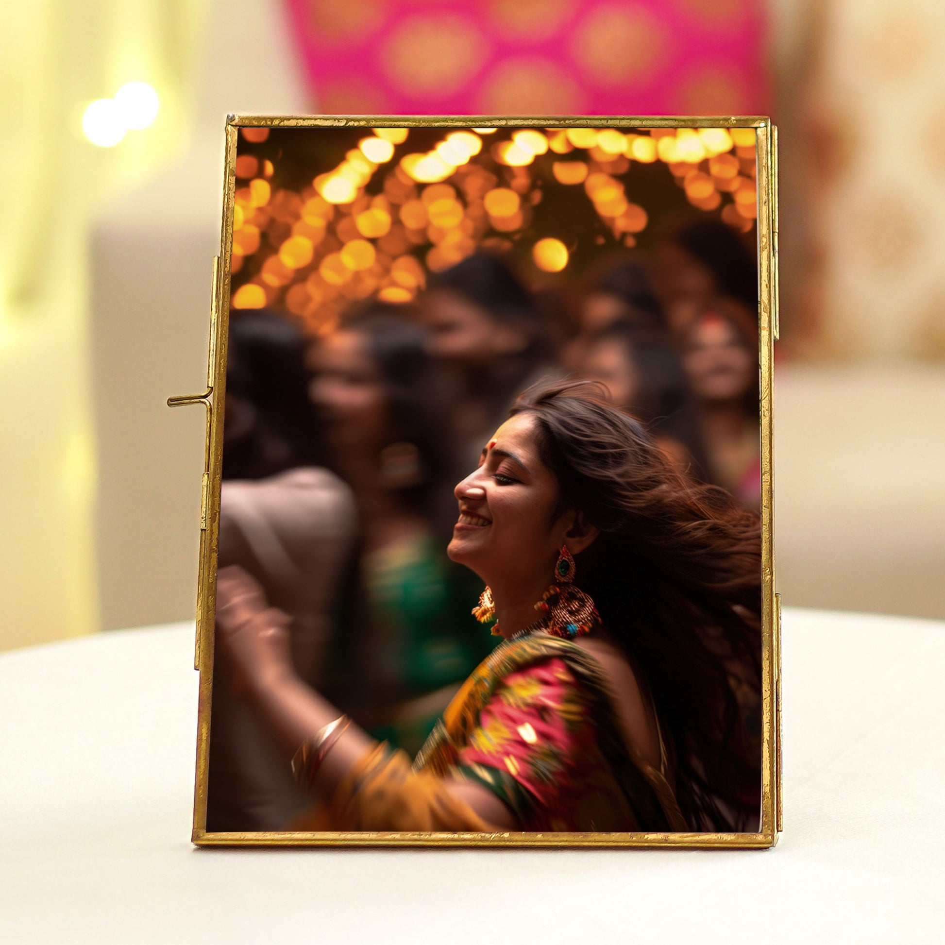 Showcase memories with our handmade Floating Photo Frame, crafted from premium brass and crystal-clear glass. Its minimalist folding design creates a stunning floating effect, perfect for photos, pressed flowers, or postcards. Durable and elegant, it suits any décor and makes a thoughtful gift for weddings, anniversaries, or special occasions.
