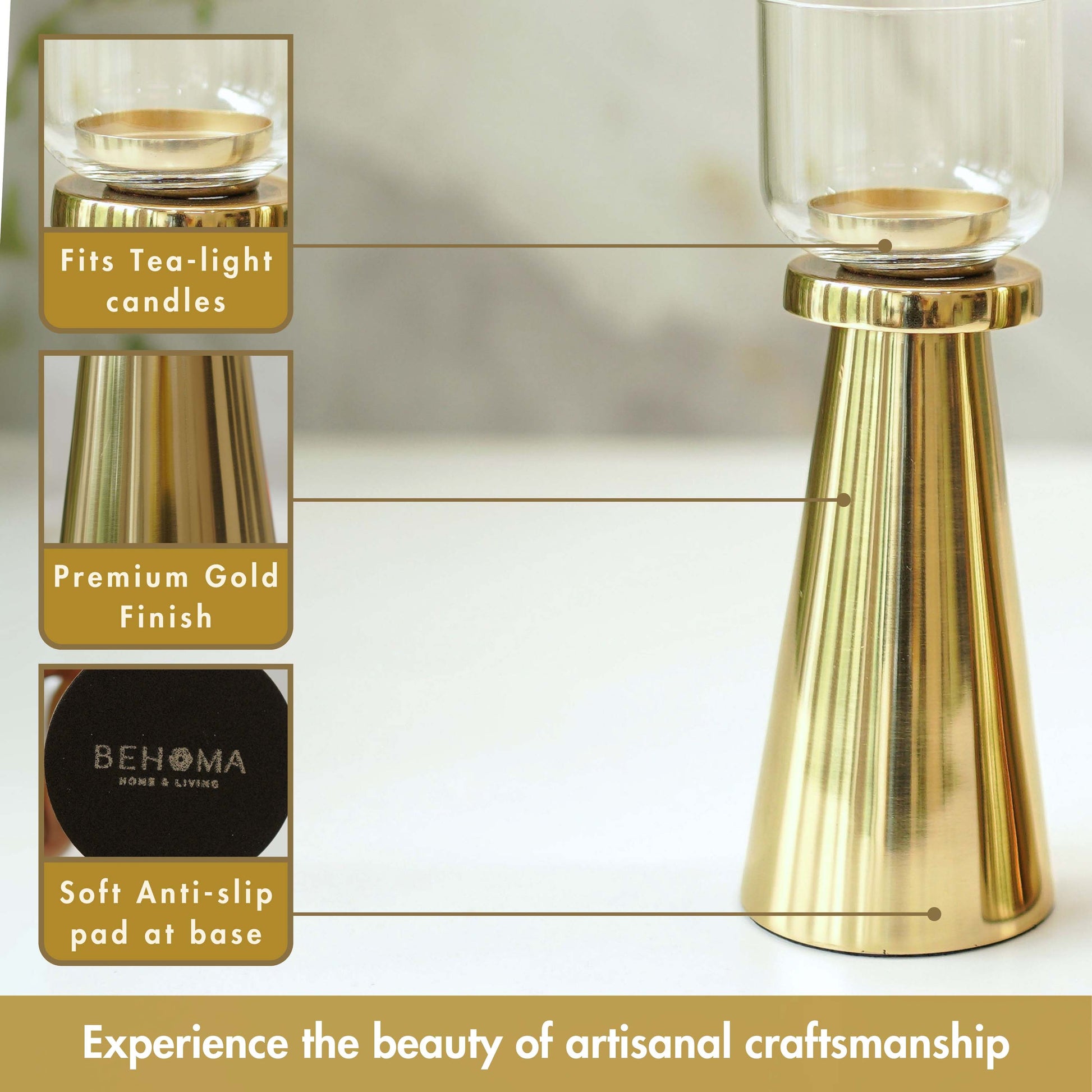 Elevate your decor with this Handcrafted Solid Metal Candle Holder, featuring a luxurious golden finish for timeless elegance. Perfect as a centerpiece, on coffee tables, or mantel displays, it adds warmth to any space. Ideal for Christmas, Diwali, or daily decor, and a thoughtful gift for birthdays, anniversaries, housewarmings, or Mother’s Day. A stylish blend of beauty and functionality!